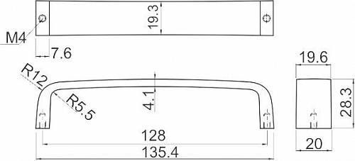 Ручка мебельная UZ-133 C=128мм, алюминий GTV UZ-133128-05